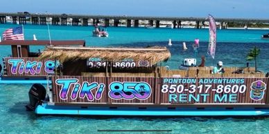 Sit back, relax and take in the beautiful views of the green and blue emerald coast water on our Brand New Tiki Boats.